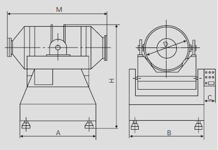 本机混合筒在传动的同时又参与摆动,使筒中物料得以充分混合。混合筒的出料口偏离混合筒圆筒部分的中线,使该机具有混合迅速、混合量大,出料便捷等特点。