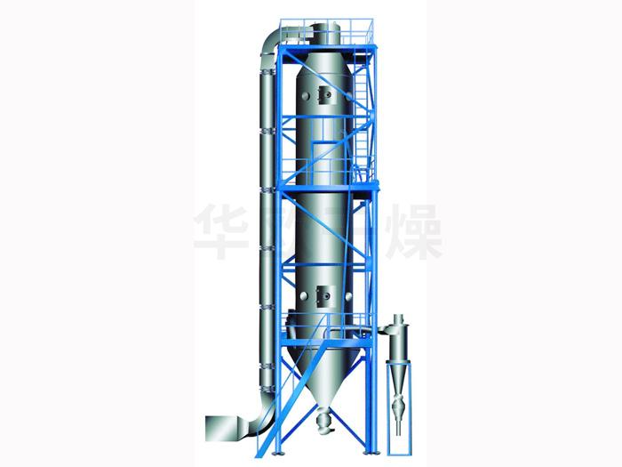 压力式喷雾干燥造粒机是采用压力式雾化器借助隔膜泵的压力将溶液或浆状的物料雾化成细微液滴,使表面积显著增大,经与热风进行充分热交换得以快速干燥(十几秒至几十秒),从而得到粉体或细小颗粒产品的设备。