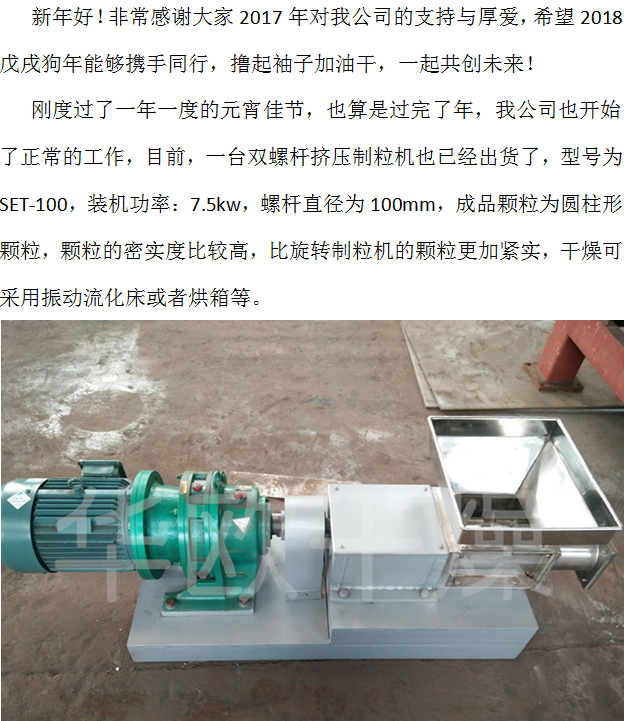 3月4日发货双螺杆挤压制粒机1台